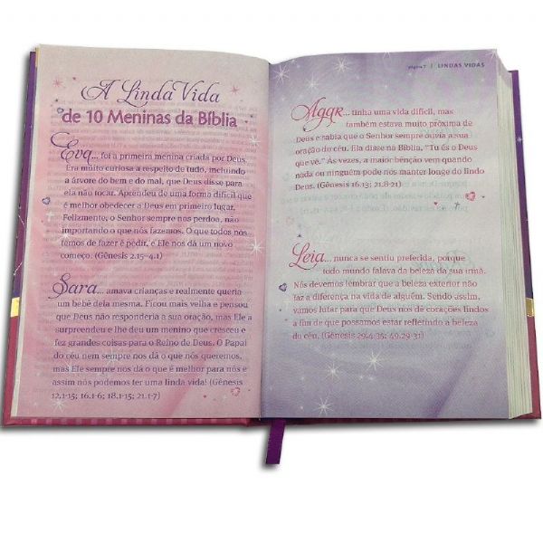 Um lindo presente que vem com um belo fecho magnético em formato de coração, espaço para dedicatória e um marcador de fita, tornando-se uma Bíblia que as meninas vão adorar para levar para a escola e igreja.