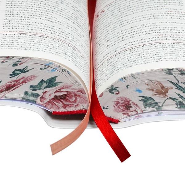 Bíblia de Estudo de maior sucesso entre o público feminino está ainda mais charmosa: acaba de ganhar uma edição com capa e bordas impressas com flores delicadas Sem perder a essência da versão já consagrada, a edição recebeu uma apresentação mais feminina e atual. Os materiais de estudo e comentários foram compostos por mulheres de diferentes países, faixas etárias e profissões, sempre concentrados em áreas de interesse especial da mulher. Valiosa ferramenta para o estudo bíblico e leitura devocional, oferece entendimento espiritual para a mulher que quer aplicar a Palavra de Deus em seu dia a dia.