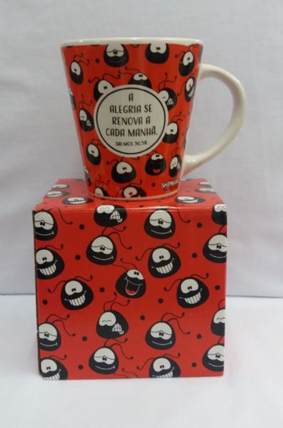 Todas as canecas vem em uma caixinha de papelão estampada igual a caneca com espaço (de: / para:) para ser utilizado em caso de presente.